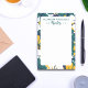 Un motif floral esthétique de vert, blanc et jaune. Personnalisez en ajoutant votre nom. Ce bloc-notes est idéal pour l'organisation de bureau ou de bureau. Il peut faire partie d'un cadeau pour un amoureux de papeterie, comme un cadeau d'anniversaire ou dans le cadre d'une saison de vacances.
