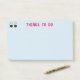 Post-it note avec deux yeux qui regardent l'arrière - plan bleu clair et le titre "CHOSES À FAIRE". Image et texte peuvent être personnalisés.