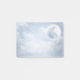 Des notes collantes avec un ciel magique d'imaginaire avec des nuages bleus fluides et une grande belle lune. 2 cygnes blancs qui volent ensemble.
