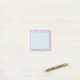 Confetti multicolore sur arrière - plan bleu clair avec cadre violet Post-It Notes. Texte "Les bonnes choses arrivent" peut être personnalisé.
