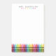 Jolies notes autocollantes colorées pour un enseignant de primaire. Nom simple en lettres majuscules noires avec une bordure de crayons arc-en-ciel. Parfait pour les enseignants de maternelle ou élémentaire.