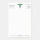 Une interprétation moderne du symbole classique de la caducée avec une tige et des serpents bleu métallique, ailes stylisées vertes et une plaque de verre rond avec un symbole croisé vert. Ce design attrayant et professionnel est parfait pour les médecins, les professionnels de la santé, les cliniques ou tous ceux qui travaillent dans les soins de santé. Personnalisable avec votre propre nom, titre et coordonnées.