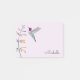 Cute post-it notes featuring a hand-painted Anna's Hummingbird and a flower on a pale pink background.