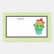 Publiez les notes avec une jolie illustration d'un cactus vert assis dans un pot de fleurs. Gros yeux kawaii et portant un sombrero rouge. L'arrière - plan est un motif avec des tourbillons vert citron avec un cadre blanc superposé pour écrire à l'intérieur.