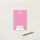 Simple, mignon, dessin animé chat blanc rose post-it-notes avec nom personnalisé.