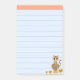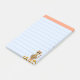 Lined Post il note avec un dessin de chat tigre mignon et trois points de look métallique or sur arrière - plan bleu clair.