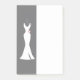 Post-it notes faites avec un arrière - plan gris classe. Illustration graphique d'une élégante robe blanche accrochée à un cintre. Design minimaliste simple.