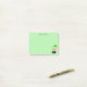 Un elfe vert mignon avec des pièces d'or et un shamrock chanceux sur des Post-it vertes Notes. Le texte peut être personnalisé.
