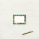 Des notes collantes réalisées avec une image de grands feuilles tropicaux verdoyants et verdoyants avec une pointe de rose derrière. Un cadre blanc avec une fausse bordure en feuille d'or superposée.