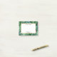 L'événement mariage post-it note avec une sensation estivale. Arrière - plan est un motif de feuilles philodendrons exotiques tropicaux en vert. Image numérique peinte à la main. Un cadre blanc avec une fausse bordure en feuille d'or superposée. Personnalisez avec le nom de la mariée et du marié, la date du mariage et l'emplacement du mariage.