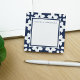 Des notes carrés élégantes présentent votre nom et/ou votre nom d'entreprise en lettres bleu marine classique, encadrées par une bordure géométrique marocaine en bleu marine et blanc.