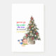 To the left of the boy and the tree is a humorous, multi-colored inscription in a playful font: "gonna go lay under the tree to remind my family". The overall scene is a funny depiction of a child impatiently waiting for Christmas presents.