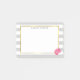 Ces notes pratiques présentent un arrière - plan à rayures blanches et gris pastel chic, une bordure en faux or et une illustration de fleur de pivoine d'aquarelle en rose vif. Customisez avec un monogramme, nom ou texte de votre choix en lettres noires modernes.