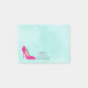 Notes collantes avec l'image d'une chaussure en stiletto rose chaud. Placez-vous sur un arrière - plan d'aquarelle vert menthe. Chic et glamour. Personnalisez avec votre nom et titre ou autre texte.
