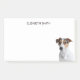 Image d'un mignon chien de race Jack Russell Terrier dans le coin inférieur droit, posé sur un blanc solide. Personnalisez avec votre nom ou message en noir minimaliste.