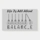 typographie de script de brosse de cool La vie est tout à propos d'équilibre, équilibre, script de brosse, ampoule, cursive, citation de vie, ampoules, pendule, dicton de vie, écriture de script, lampe incandescente, devis de balance, billes de balance, typographie de script