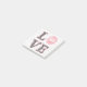 Caractéristiques de conception ce un ensemble en pastel de lèvres et d'AMOUR dans un motif rayé noir et blanc.