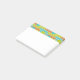 Ce bloc-notes Post-It a un design moderne du milieu du siècle de rectangles extensibles en vert citron, marron cannelle et turquoise avec des cercles superposés.