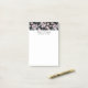 Mariage Post it note - la bordure supérieure conçue avec un élégant motif fait avec une aquarelle illustration de fleurs roses avec feuilles et tiges bleu-gris. Un arrière - plan noir classe derrière le motif.