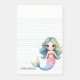 Dive into a sea of thoughts with these enchanting "Mermaid Whispers Sticky Notes". Tailored for the imaginative minds of children, each sheet showcases a charming mermaid illustration at the bottom, with her colorful tail complementing the ocean theme. The note upper area is lined, ideal for personal notes, reminders, or aquatic tales. Customizable with a child's name at the bottom, these sticky notes are sure to make a splash with any young scribe or organizer.