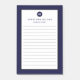 Un bloc-notes professionnel avec un design minimaliste monogrammé en bleu marine. Nom et titre personnalisés, rôle ou texte personnalisé présentés sur un simple arrière - plan blanc encadré par une bordure bleu marine. Personnalisez-vous en utilisant les champs fournis ou utilisez le bouton "message" pour contacter le concepteur pour obtenir de l'aide.