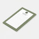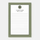 Un bloc-notes moderne et tendance avec un design minimaliste avec un médaillon monogramme stylisé. Nom personnalisé ou texte personnalisé présenté sur un simple arrière - plan blanc, encadré par une bordure vert olive. Personnalisez-vous en utilisant les champs fournis ou utilisez le bouton "message" pour contacter le concepteur pour obtenir de l'aide.