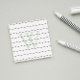 Post-it minimaliste avec des lignes fines et, au centre, un monogramme vert pâle.