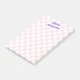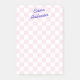 Des notes collantes avec votre nom dans une police bleue de style rétro sur un motif de damier rose pâle et blanc.