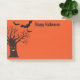 Note de poste en orange avec une impression éffrayante de chauve-souris Halloween. Customisez cet objet ou achetez tel quel.
