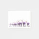 Post-it-Notes shown with fancy purple tones of deer or elk wandering across the paper near the bottom. These purple deer have a variegated purple to tan tone on tone landscape across their bodies. Merry Christmas in text near their hooves. On white background.