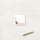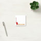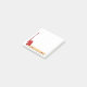 There is plenty of room to write on this decorated post-it note. It is decorated with a drawing of a red pallet jack under a pallet. The handle of the pallet jack is in the upright resting position parallel to the left side. The wooden pallet is along the bottom along with the forks of the pallet jack. Good for a warehouse, logistics, shipping, trucking, or other business that uses pallet jacks and forklifts.