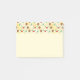 Des notes collantes avec un motif mignon avec des cônes de pin et sainte sur un arrière - plan d'aquarelle jaune avec des petits cercles blancs éparpillés autour.