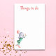 Bloc-notes mignon et unique avec l'illustration d'une chouette sirène tenant des fleurs et un ballon. Idéal pour les amateurs de sirènes et de chouettes. Le texte dit "Que faire" mais il est personnalisable. Illustration de Patricia Alvarez.