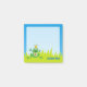 Dessin de grenouille Prince avec couronne sur herbe et arrière - plan du ciel. Texte personnalisé.