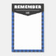 Bloc-notes cool avec un arrière - plan de chèque en buffle bleu, et "rappelez-vous" écrit en caractères blancs gras. Personnalisez avec vos initiales.