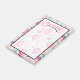Un ensemble délicieux de notes collantes de grande taille avec un design motif délicieux. Des beignets rose vernis avec des arroses. Serviettes d'arrosage à la bouche en rose et bleu avec rosettes et fraises sur le dessus. Des macarons de pâtisserie rose pastel et de petits boutons de bonbons roses décorent également ce motif plein de douceurs. Une superposition semi-transparente qui s'étend sur le dessus afin de pouvoir écrire lisiblement sur le design motif. Le texte en haut dit "doux rappels" et peut être changé / personnalisé à votre goût.