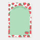 Le bloc-notes collant parfait pour l'été avec un motif juteux de fraises rouges. Ajoutez votre nom en texte courbe en haut d'une arche verte assortie, avec une paire de fraises nichée dans un coin.