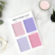 Les blocs-notes Post-it personnalisés avec votre nom, pour faire des listes et l'organisation quotidienne avec quatre catégories : dès que possible, plus tard, chaque fois. Rose et violet, dans deux tons différents.
