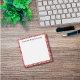 Ce petit bloc-notes adhésif carré 3x3 peut être personnalisé avec un nom ou un message. Il s'agit d'une liste de rappel, mais peut être utilisé pour toute note personnalisée. Il a une bordure rouge et rose florale.