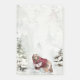 Une scène d'hiver d'inspiration naturelle unique, ce design présente un paysage enneigé aquarellé avec des sapins enneigés et un ours grizzli portant un pull en laine rouge dans le froid. L'arrière - plan pâle a des formes abstraites et subtiles d'arbres et de neige et ajoute au charme rustique. Ce design peut être personnalisé avec votre nom, monogramme ou autre texte.
