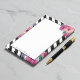 Des couleurs vives se mêlent à des rayures noires et blanches dans ce design contemporain. De jolies aquarelles fleurissent dans des tons vifs de rose, fuchsia et violet sont éparpillées autour du cadre rayé en diagonale. Personnalisez avec votre nom ou tout autre texte souhaité en remplaçant le nom de l'exemple indiqué.
