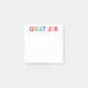 Ce 3 x 3 pad de post-its notes est parfait pour tous ! Avec ses couleurs vives et joyeuses et son imprimé en bloc classique disant "Great Job", ce serait génial de donner à quiconque a fait un excellent travail ces derniers temps ou ce serait une merveilleuse note de mettre sur le déjeuner de quelqu'un, bureau, travail scolaire, ordinateur, etc.