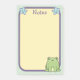 Mignonnes notes avec un kawaii, dessin animé, grenouille verte en bas à droite. En haut des notes se trouvent deux étoiles bleues joyeuses de chaque côté du mot Notes qui est dans une couleur pastel violet clair. L'espace pour écrire ses notes est dans un jaune pastel avec une bordure pastel violet. l'arrière - plan est dans un vert pastel avec de petits pois blancs. Idéal pour ajouter à vos fournitures scolaires pour enfants.