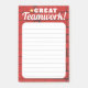 Une série de post-its de motivation de reconnaissance pour que vos programmes d'encouragement des employés ou une manière rapide montre à vos collègues l'appréciation à leur service spécialisé. Celui-ci comporte un arrière - plan barré de relief par faux avec le "grand travail d'équipe" et une étoile d'or de faux, et félicite votre personnel pour un grand travail sur des projets quotidiens ou spéciaux. Mettez leur nom sur le dessus, écrivez une note, et votre nom au fond. La vraie solution simple pour garder votre sentiment de personnel a apprécié.