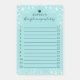 Bloc-notes turquoise pour elle avec une jolie couronne de princesse et ligne florale blanche avec 12 choses à conquérir aujourd'hui dans une case pratique pour faire la liste de vos buts quotidiens avec votre nom, un joli script, une petite couronne et fleurs blanches contre un arrière - plan turquoise.