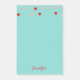 Valentine rose Turquoise cordes Coeurs Personnalisé Post-it Notes Conçu avec un arrière - plan turquoise pastel et vous pouvez customiser à n'importe quelle couleur que vous souhaitez. De petits coeurs rouges et roses sur une corde sont sur le dessus des notes collantes et customisés avec le nom dans le script de calligraphie rouge en lettres à travers la zone inférieure. Fait une excellente idée cadeau de la Saint Valentin pour les amis, le patron, les collègues et plus. CLIQUEZ SUR L'OPTION PERSONNALISER LE MODÈLE ET ENTREZ LE NOM