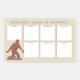Personnalisez ces notes collantes drôles de calendrier hebdomadaire de VISÉES de SQUATCH pour vous-même ou votre Bigfooter préféré. Ma conception de marche originale de Bigfoot dans les gros morceaux abstraits du brun et bronzage parle une balade sur en bas à gauche de la page. Sept boîtiers blancs fournissent un bon nombre d'espace pour des notes, listes et naturellement, des visées. Ajoutez votre nom de choix à l'en-tête de visées de Squatch et créez celui d'un bloc-notes collant de calendrier aimable de Bigfoot comme cadeau personnalisé unique.