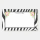 Des rayures modernes de zèbre noir et un bouquet rose avec des feuilles. monogramme facultatif