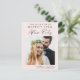 Elegant light pink save the date postcard for your elopement or private wedding reception. The front features your day photo and "Save The Date For Our Happily Ever After Party" in a mix of simple typography and a modern script. Under your photo, add your first names and reception date. On the reverse side, personalize your save the date message and add your married names in a signature-like script.