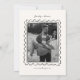 This hand drawn save the date features trendy, hand-drawn postage stamps with cute and whimsical wedding-themed doodles and sayings written in an adorable, handwritten style. The back of the card features a large postage stamp frame with a placeholder for your own photo. There is also an editable placeholder to indicate your wedding website URL, which can also be deleted if the URL is not yet available. Comes in a creamy white shade.